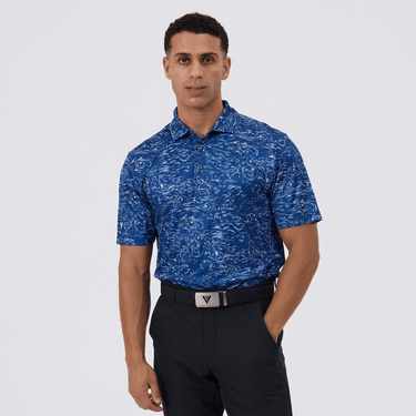 Elevate your golf attire with the men's Koi golf polo, a reflection of our commitment to sustainability and high-performance design. This polo is crafted entirely from 100% recycled polyester, emphasizing our dedication to environmental responsibility. Engineered to keep you dry and comfortable, the moisture-wicking fabric ensures you stay cool under pressure, whether you're on the green or at the driving range. The self-fabric collar with a built-in collar stay keeps your look sharp and structured throughout the day. A high-low hem detail with side slits offers enhanced mobility and a contemporary fit, while the striking all-over print makes a bold statement on style. The Koi golf polo is not just a piece of clothing, but a statement of care for the planet and a testament to functional, stylish sportswear.