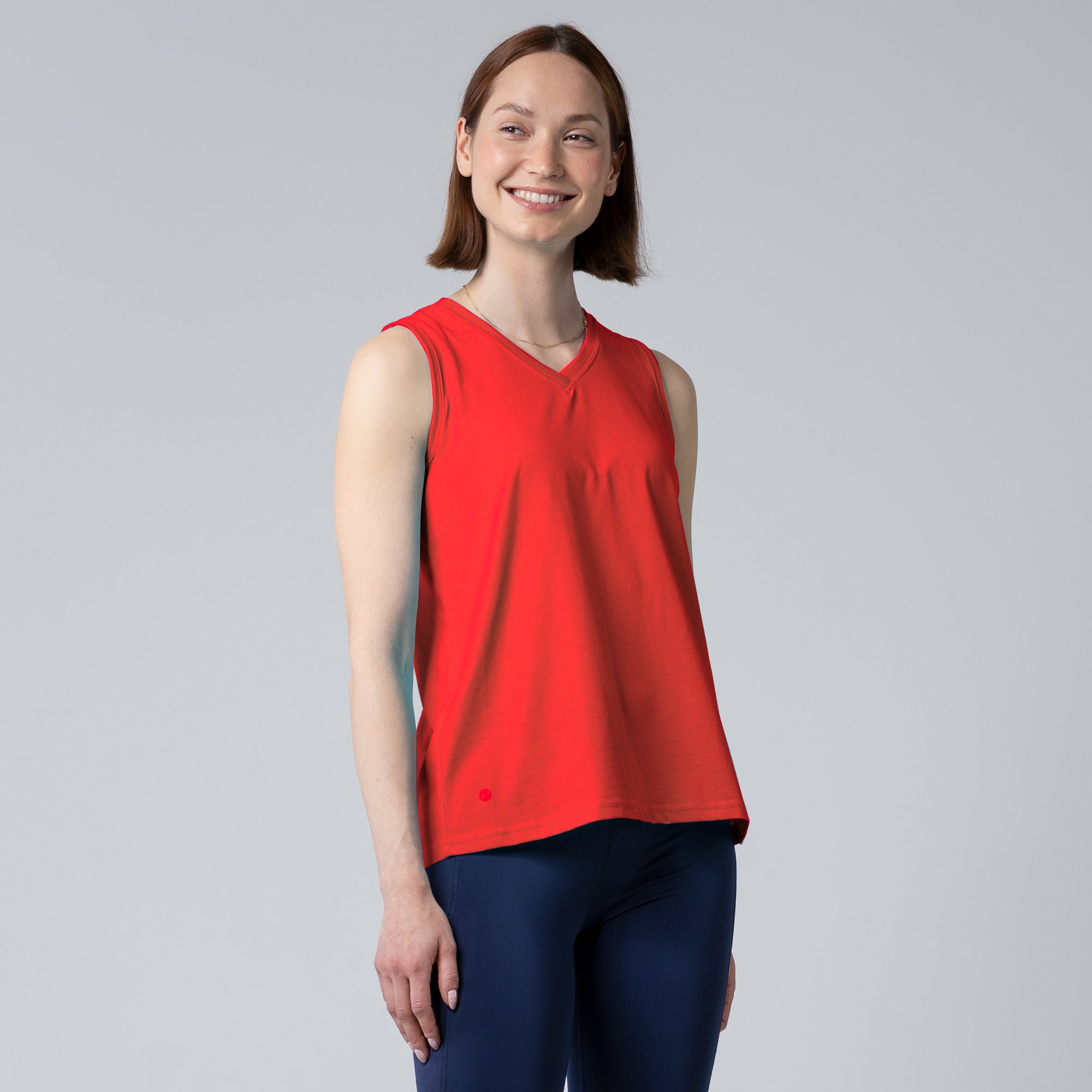 The Paisley sleeveless t-shirt is a stylish and versatile addition to your wardrobe, perfect for warm weather days or layered looks. This top is crafted from a comfortable blend of 65% polyester and 35% cotton, providing both durability and softness. The V-neck design adds a flattering touch, while the self-banded sleeve openings ensure a neat finish. Unique design elements include a peekaboo opening on the center back and slits at the center back bottom, adding a hint of allure and increased mobility. Whether you're dressing up for an outing or keeping it casual, the Paisley Sleeveless T-shirt brings a unique twist to any outfit.