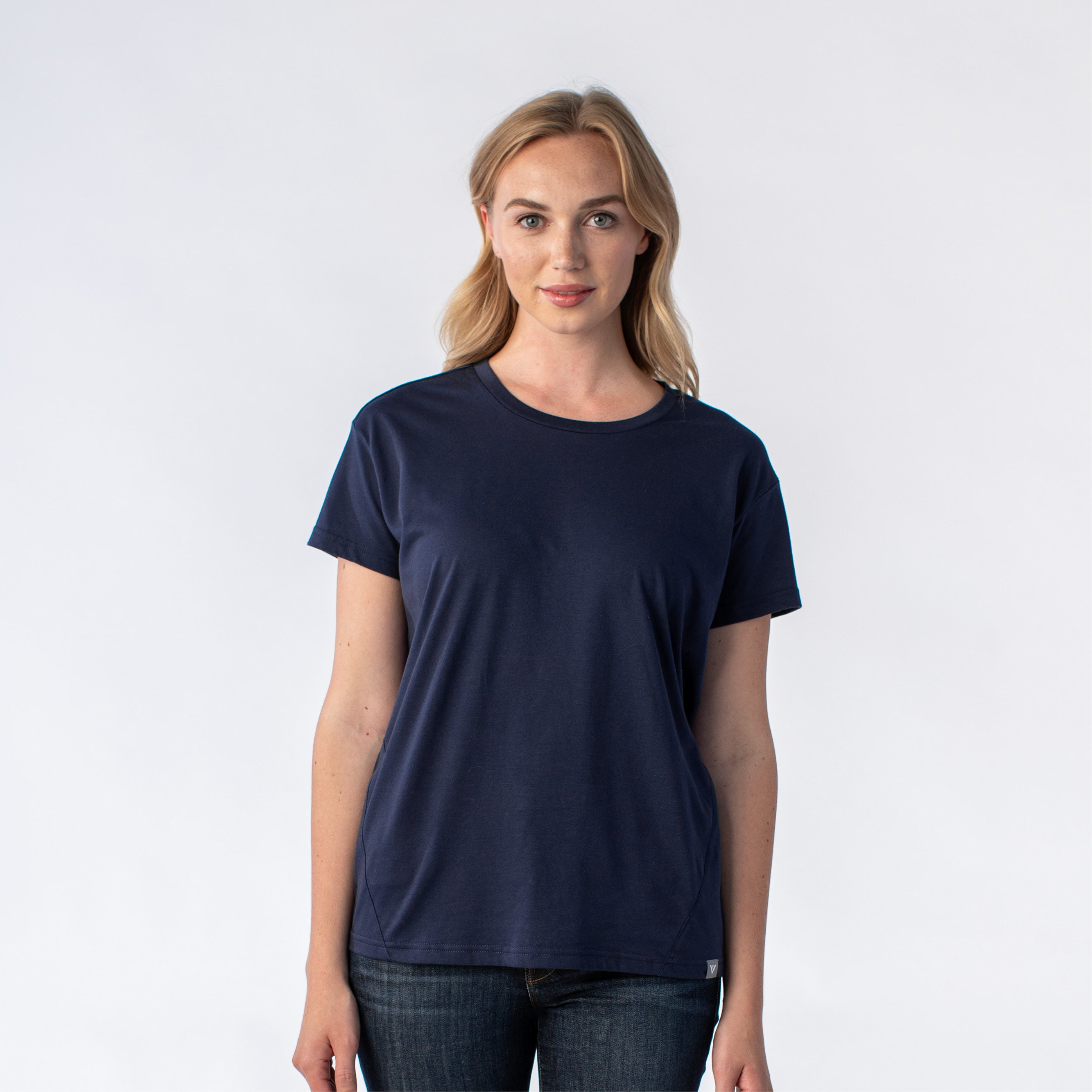 The Teagan T-shirt is a staple for any wardrobe, offering a perfect blend of comfort and durability. Made from a cozy jersey knit fabric consisting of 65% polyester and 35% cotton, this t-shirt provides a soft hand feel that is gentle on the skin while offering the resilience needed for daily wear. The ribbed neckband not only enhances the shirt's durability but also adds a touch of stylish detail, ensuring the neckline maintains its shape through frequent wear and washing. Ideal for layering or wearing alone, the Teagan T-shirt is versatile enough for casual outings, relaxed home wear, or as a comfortable base layer under sweaters and jackets. Whether you're out for the day or lounging at home, this t-shirt combines easy-going style with practical everyday comfort.