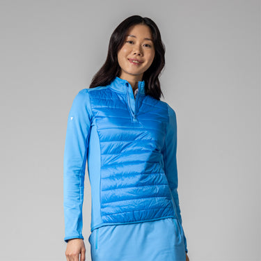 The Ember is a golf jacket designed to enhance both your play and appearance on colder days. This piece features a 100% polyester contrast construction, highlighted by a front quilted panel that not only adds a unique aesthetic but also provides extra warmth. It comes equipped with a smooth reverse coil zipper for easy operation and a streamlined look. Two invisible zippered front pockets offer secure and convenient storage for essential items like golf balls and tees. Additionally, the jacket includes practical thumb holes to keep the sleeves in place and hands warm, enhancing comfort and concentration during your game. Perfect for chilly mornings on the course, the Ember combines functionality with refined details to keep you looking and performing your best.