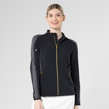 Meet the Resist Jacket, a perfect blend of functionality and flair. Crafted from a high-performance mix of 92% polyester and 8% spandex, this jacket not only wicks away moisture but also provides a sleek and comfortable fit. The contrast stylized panels add a modern touch to your active wardrobe, while the gold color zipper trim brings a touch of glamour to your look. Elevate your style and stay comfortable during any activity with the Resist Women's Jacket, where fashion meets function seamlessly.
