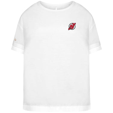 • Bordure tissée semi-mate contrastante à l'ouverture des manches et à l'ourlet du corps