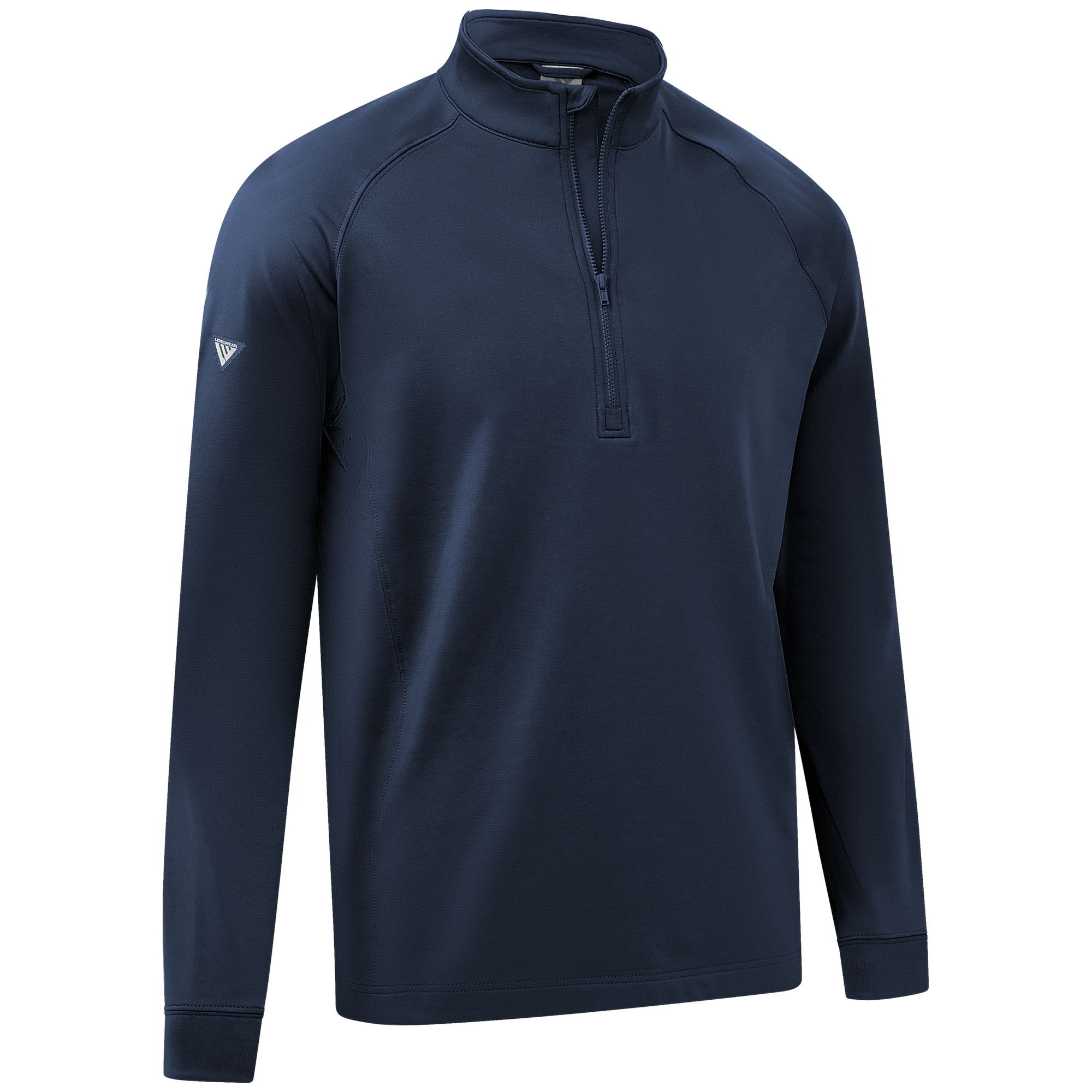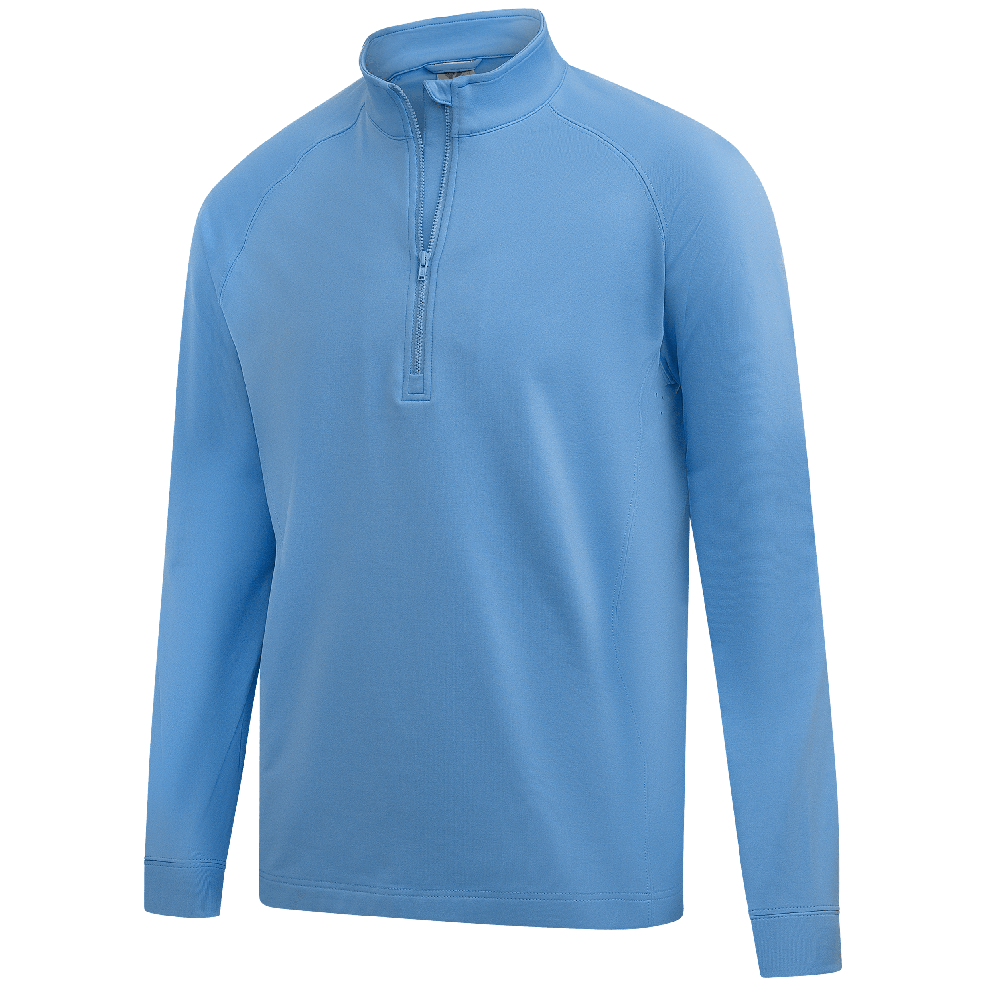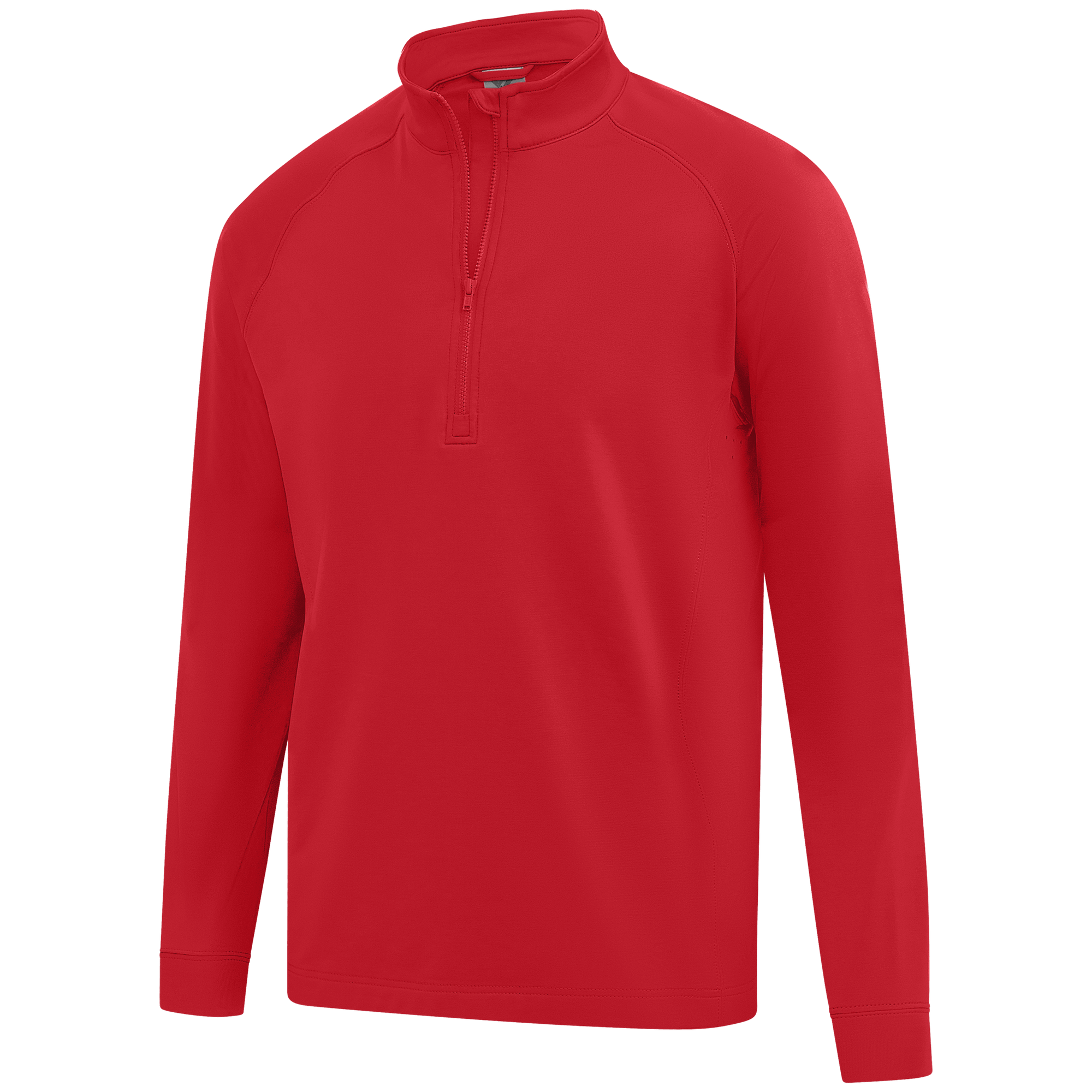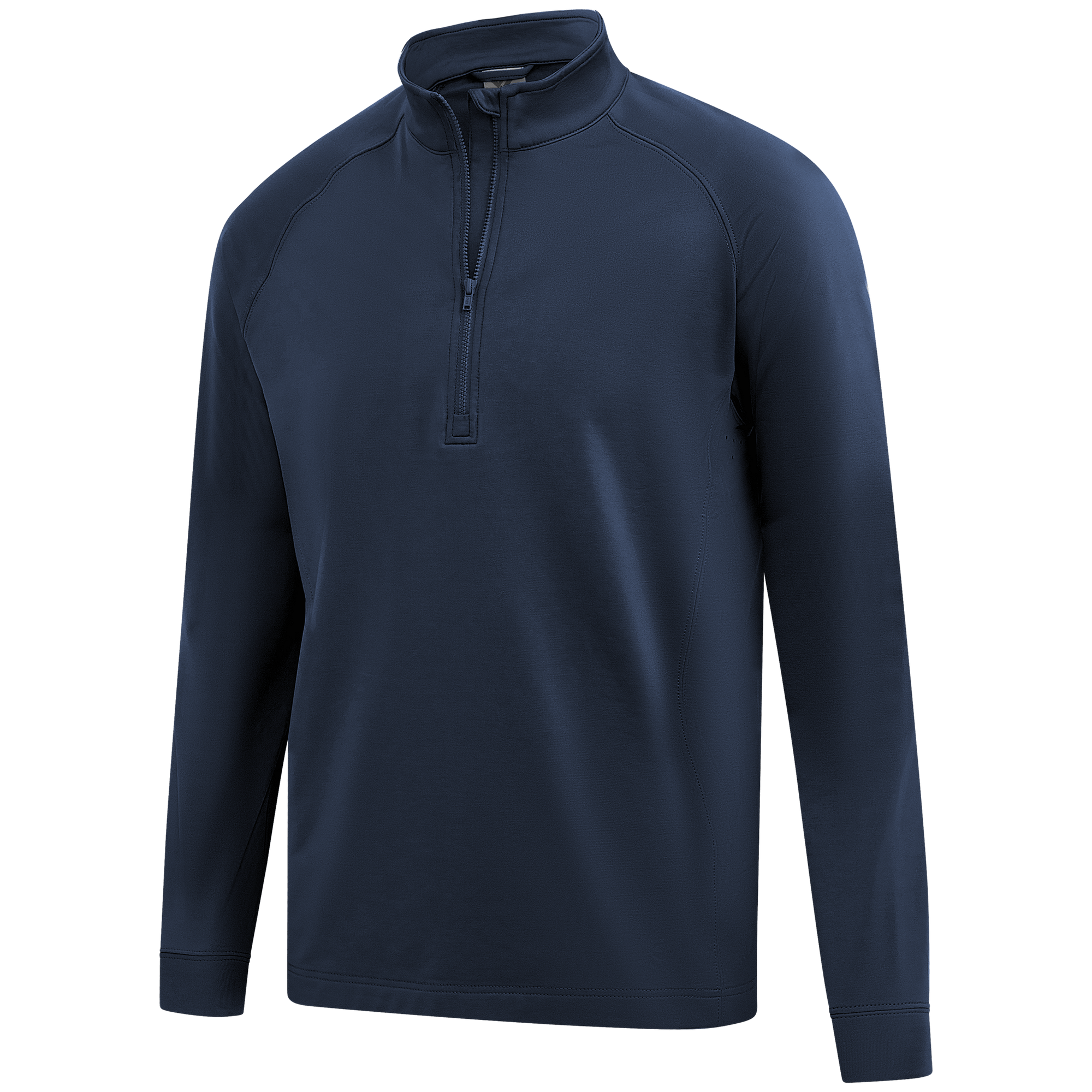 Experience the unexpected warmth of the Calibre mid-layer, a men's mid-weight quarter-zip pullover that combines enhanced functionality with refined simplicity. This garment features a mock neck topped with a durable vislon zipper and is crafted with raglan sleeves to facilitate unrestricted movement. The interior is brushed for a supremely comfortable feel. It is tailored with banded cuffs for a snug fit, engineered side panels for a streamlined look, and underarm perforated venting holes for optimal breathability, ensuring that it keeps you warm without sacrificing comfort or mobility.