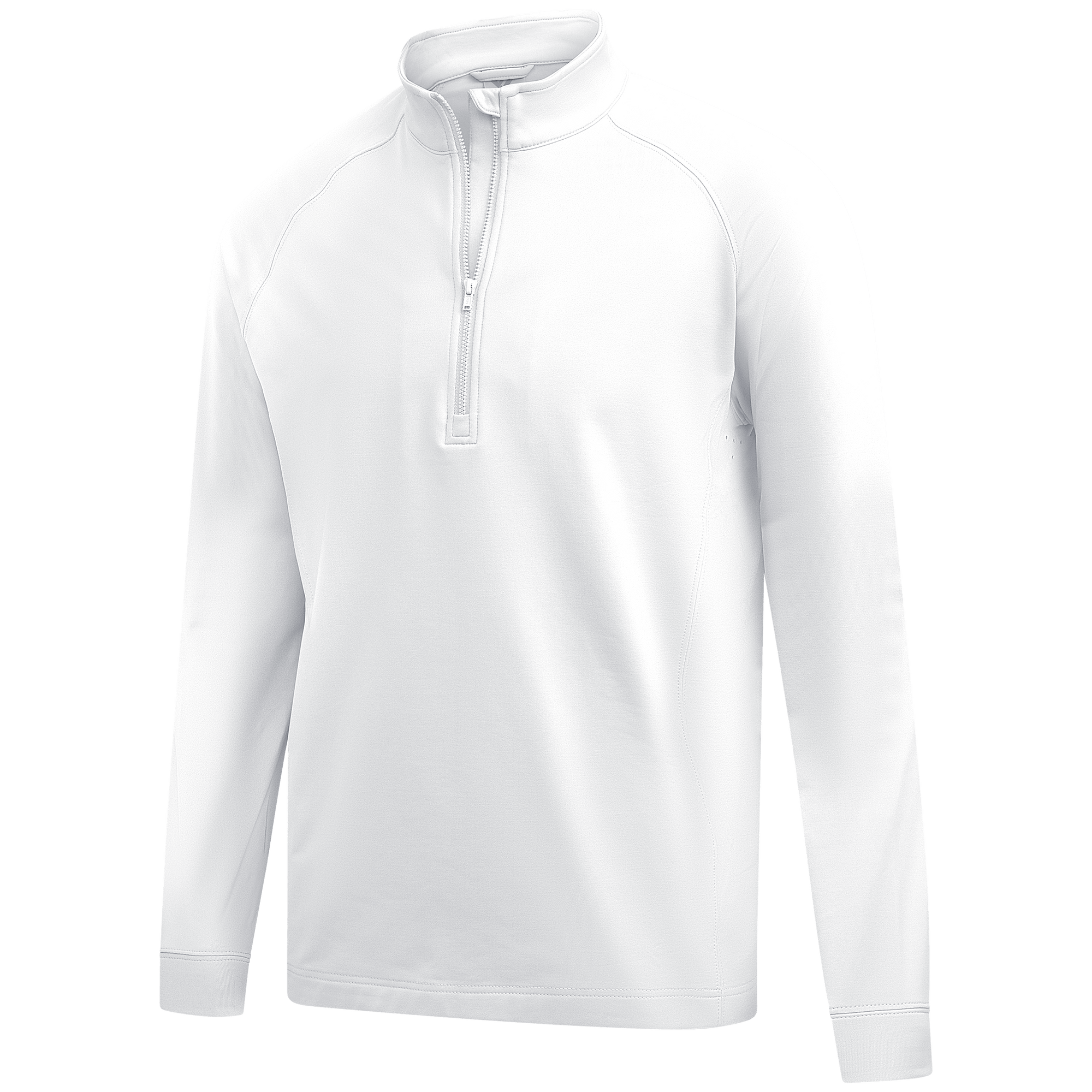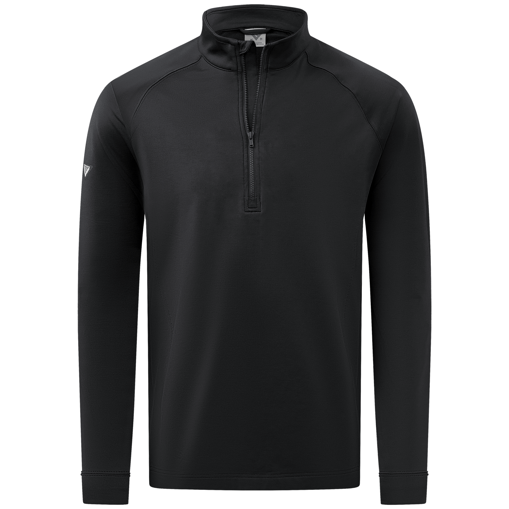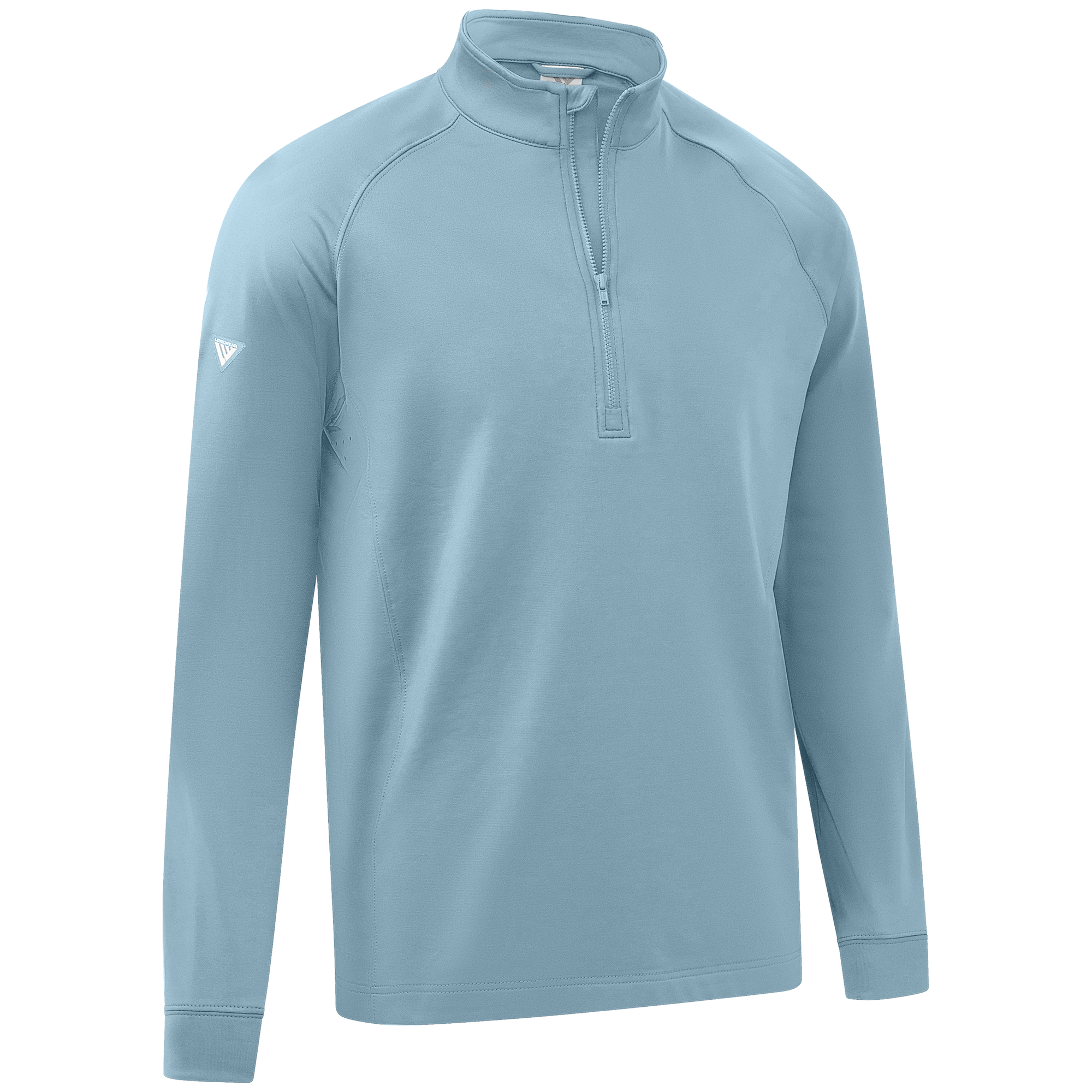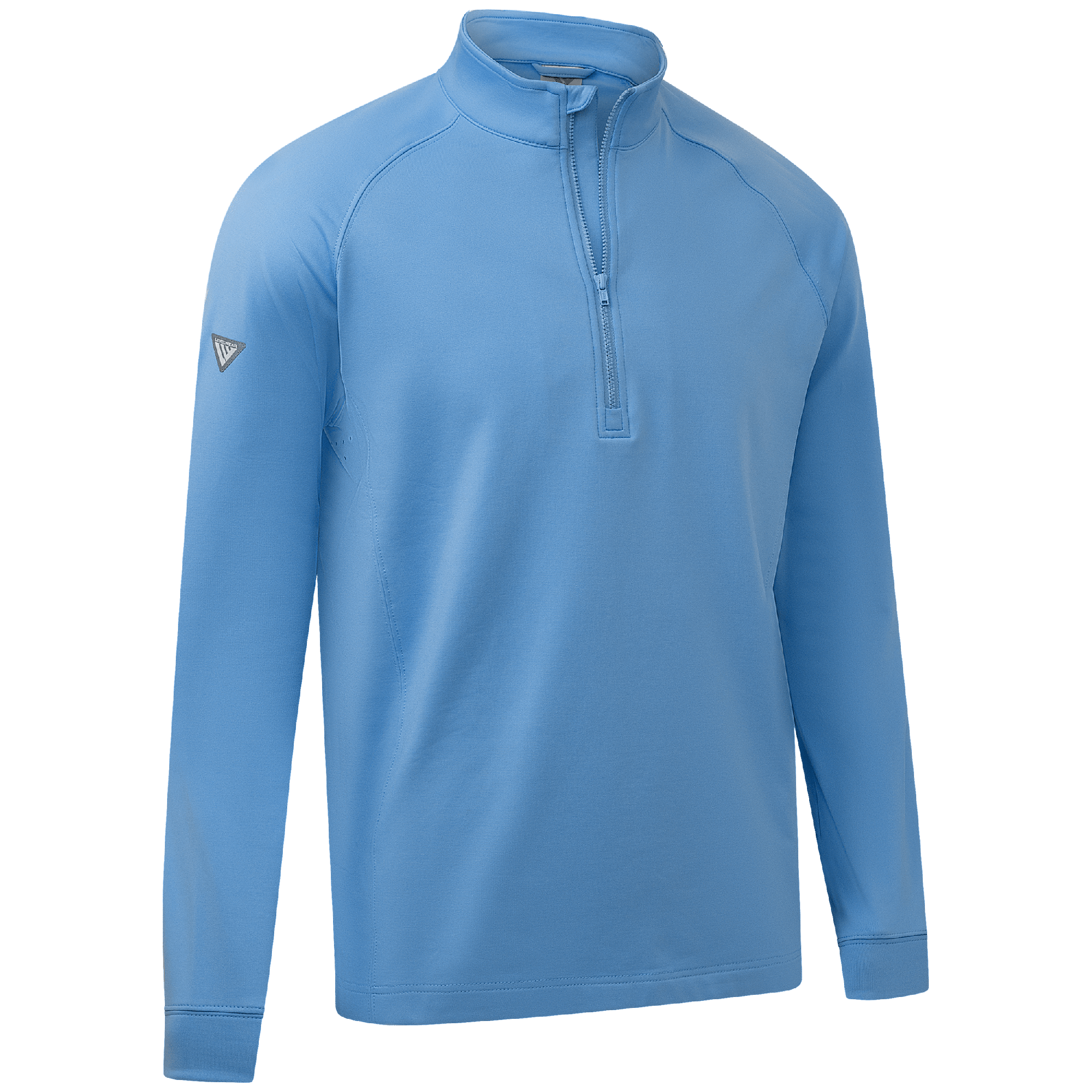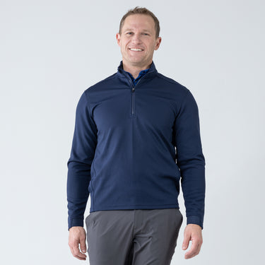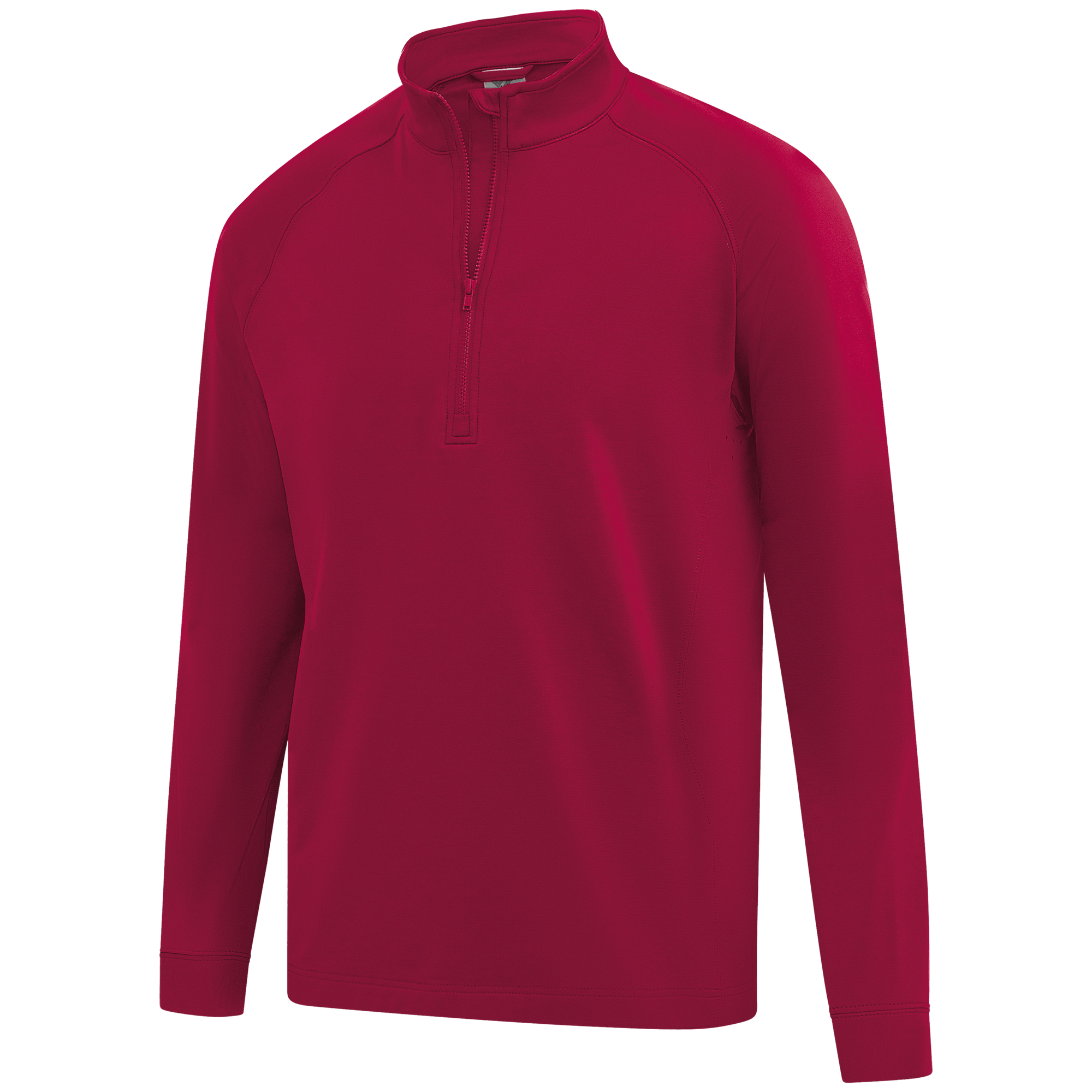 Experience the unexpected warmth of the Calibre mid-layer, a men's mid-weight quarter-zip pullover that combines enhanced functionality with refined simplicity. This garment features a mock neck topped with a durable vislon zipper and is crafted with raglan sleeves to facilitate unrestricted movement. The interior is brushed for a supremely comfortable feel. It is tailored with banded cuffs for a snug fit, engineered side panels for a streamlined look, and underarm perforated venting holes for optimal breathability, ensuring that it keeps you warm without sacrificing comfort or mobility.