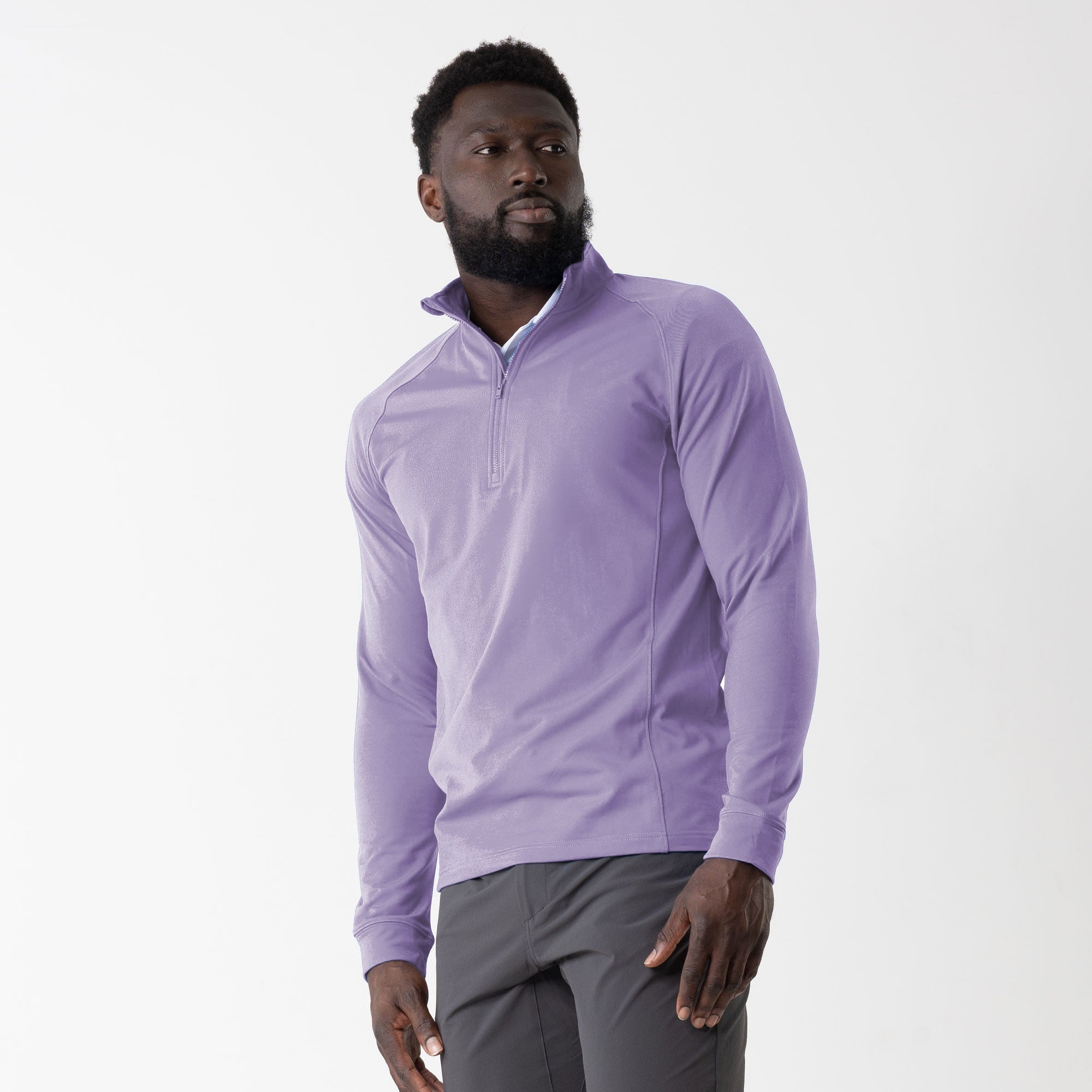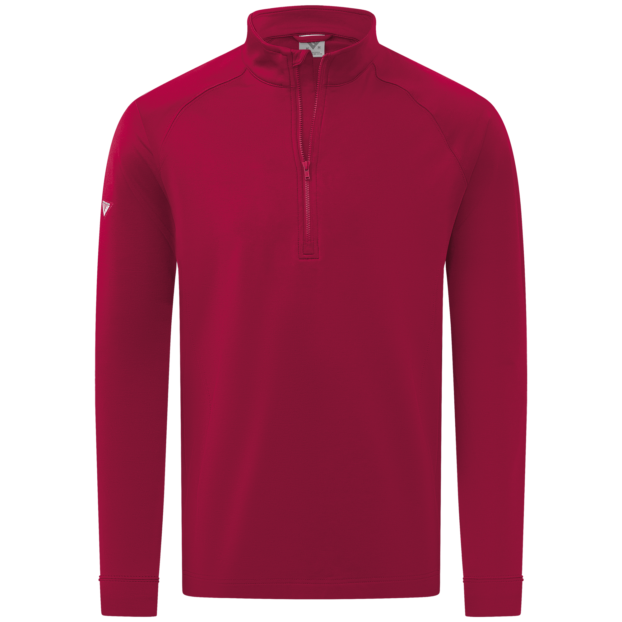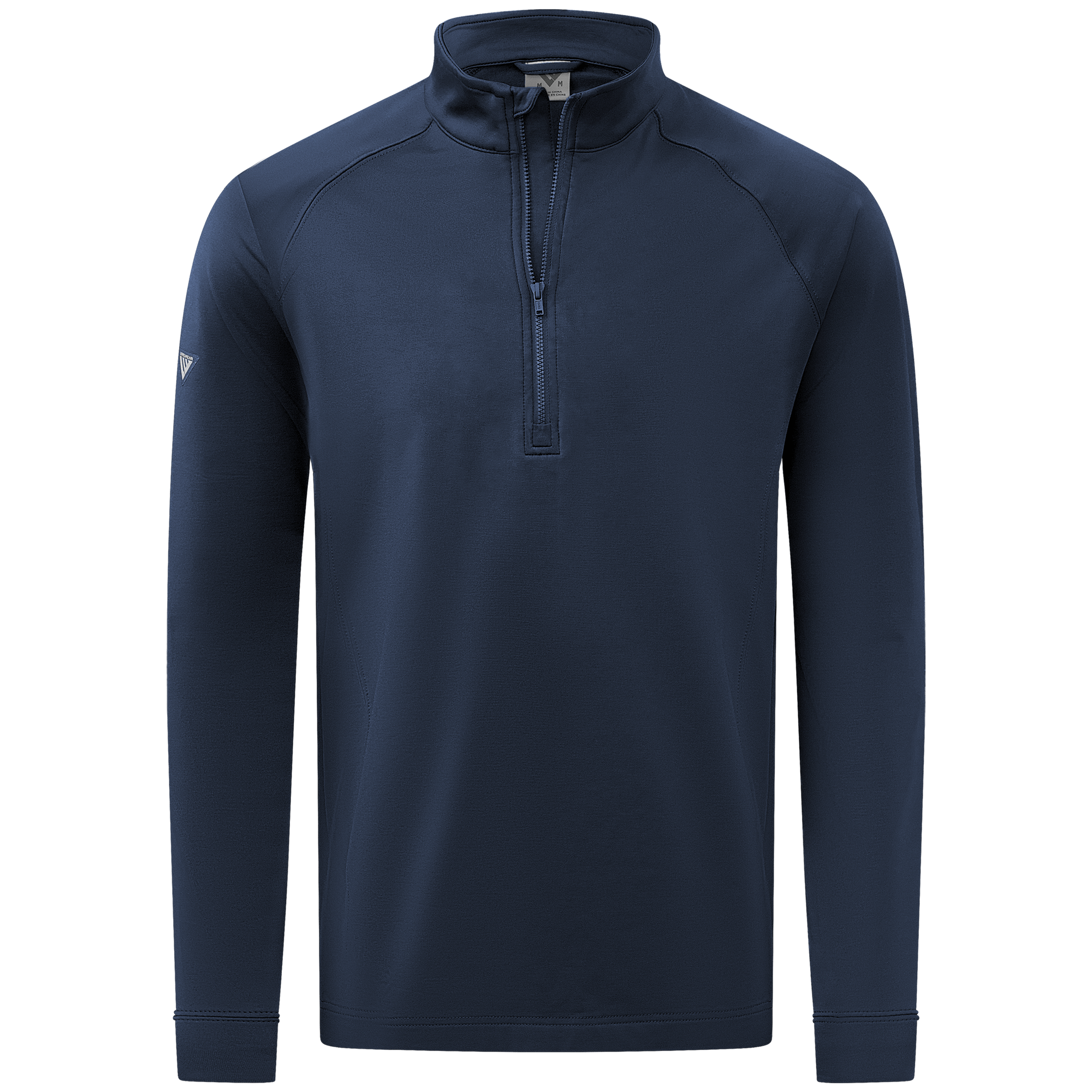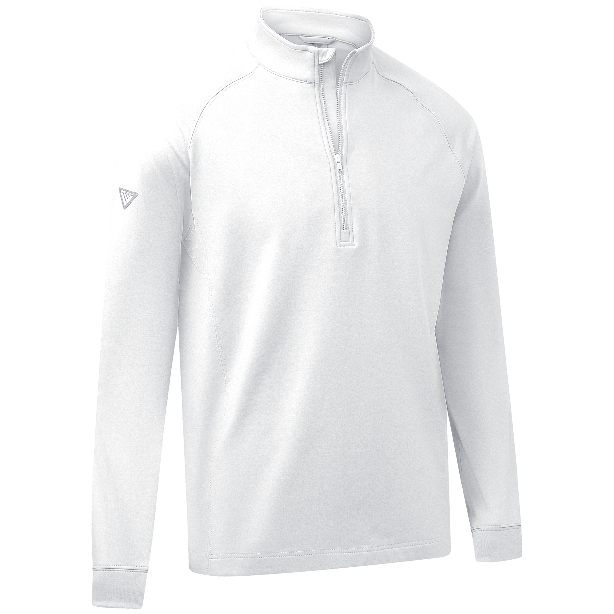 Experience the unexpected warmth of the Calibre mid-layer, a men's mid-weight quarter-zip pullover that combines enhanced functionality with refined simplicity. This garment features a mock neck topped with a durable vislon zipper and is crafted with raglan sleeves to facilitate unrestricted movement. The interior is brushed for a supremely comfortable feel. It is tailored with banded cuffs for a snug fit, engineered side panels for a streamlined look, and underarm perforated venting holes for optimal breathability, ensuring that it keeps you warm without sacrificing comfort or mobility.