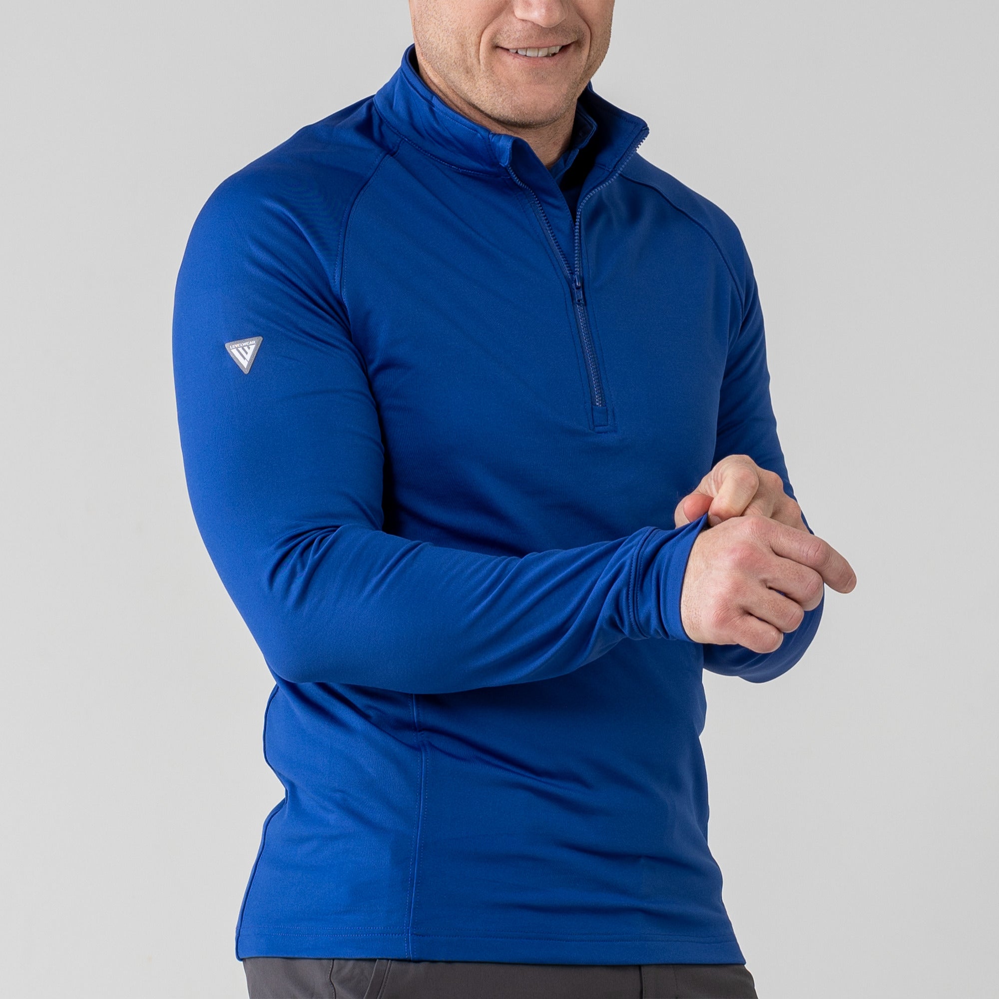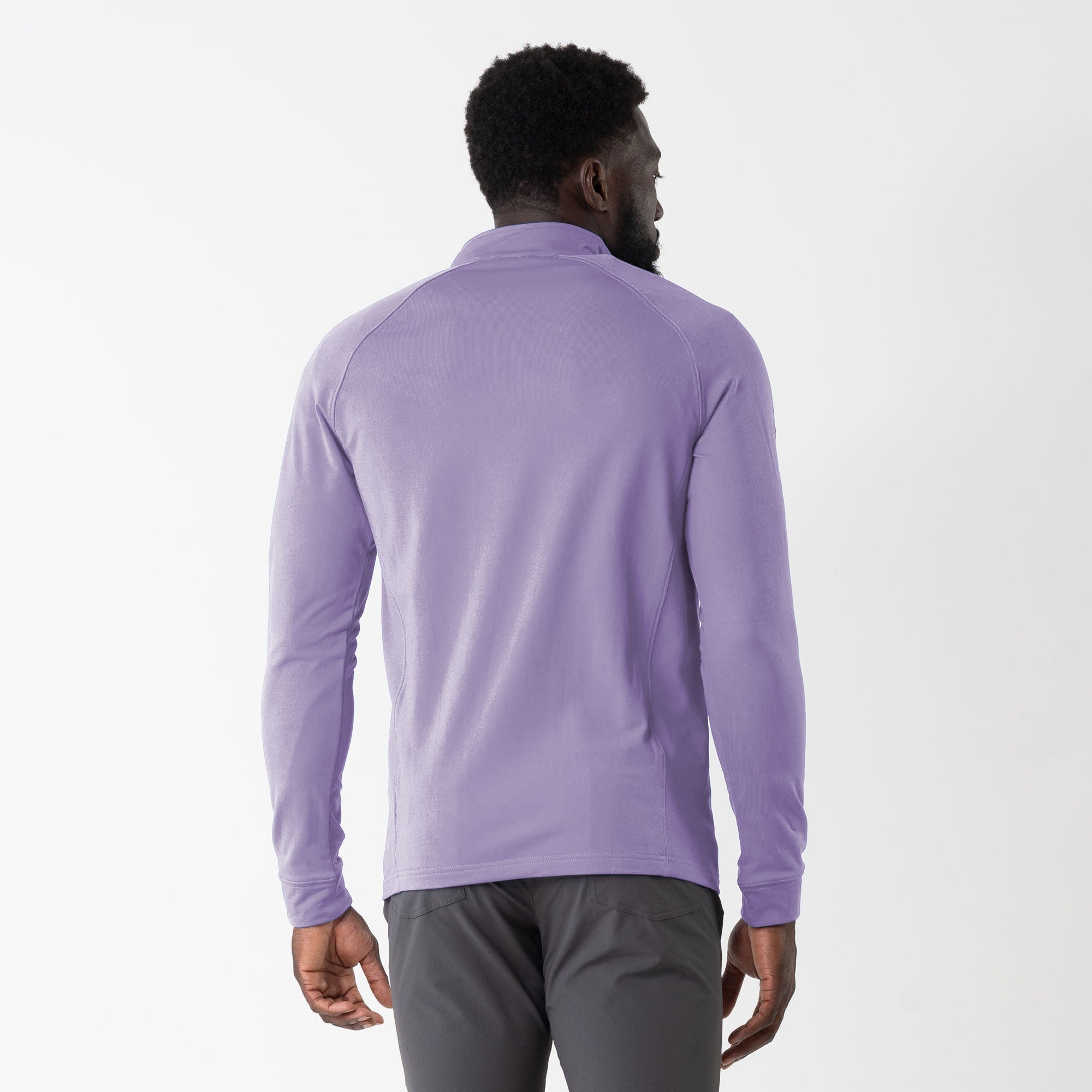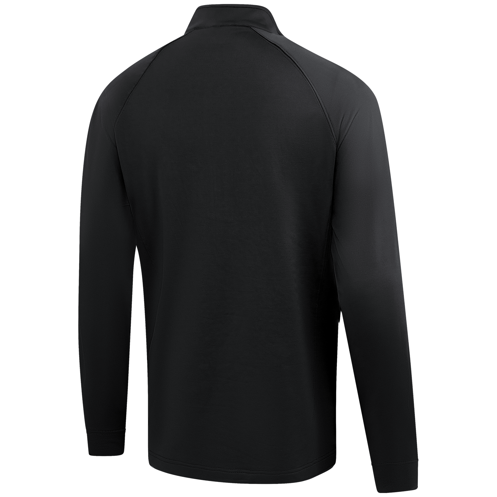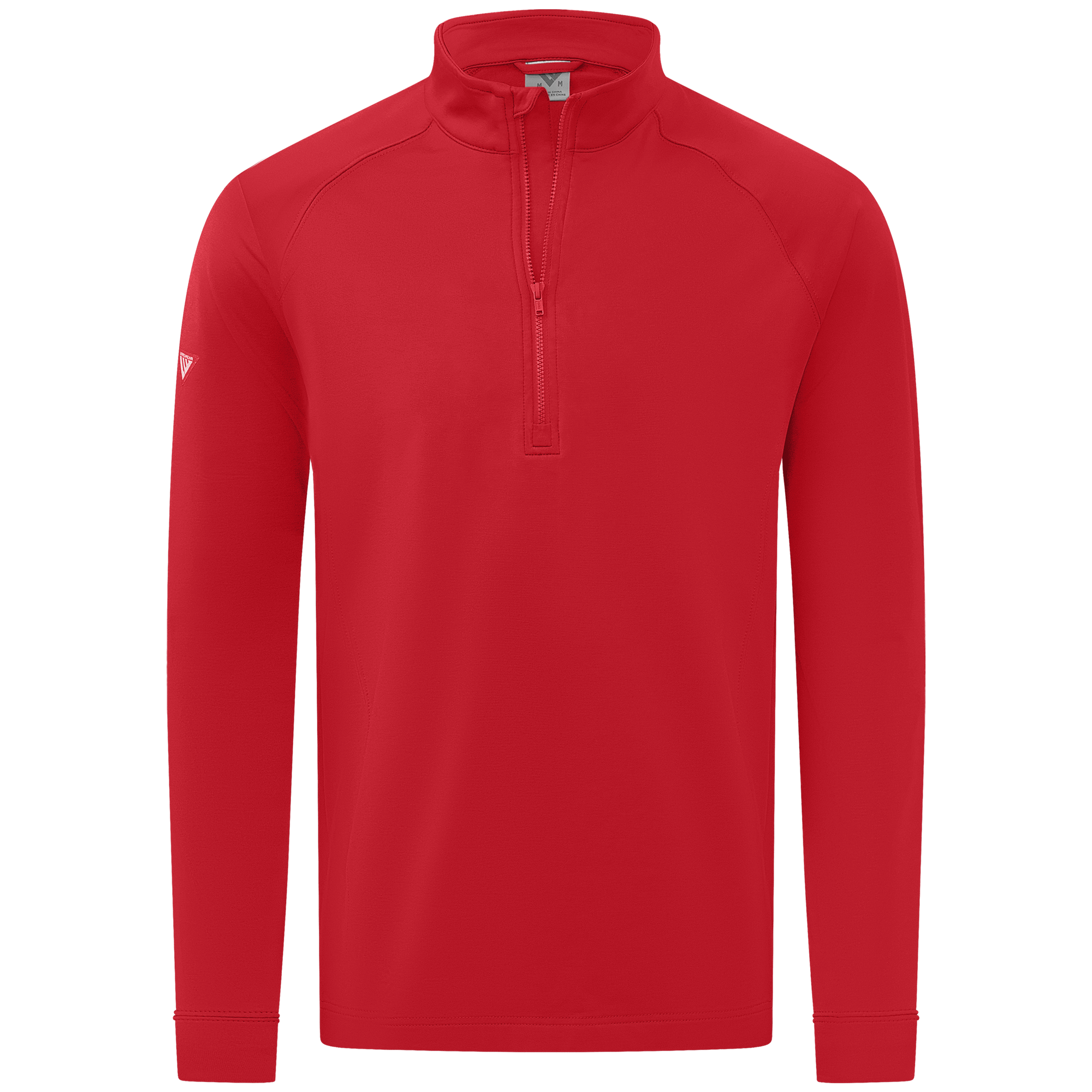 Experience the unexpected warmth of the Calibre mid-layer, a men's mid-weight quarter-zip pullover that combines enhanced functionality with refined simplicity. This garment features a mock neck topped with a durable vislon zipper and is crafted with raglan sleeves to facilitate unrestricted movement. The interior is brushed for a supremely comfortable feel. It is tailored with banded cuffs for a snug fit, engineered side panels for a streamlined look, and underarm perforated venting holes for optimal breathability, ensuring that it keeps you warm without sacrificing comfort or mobility.